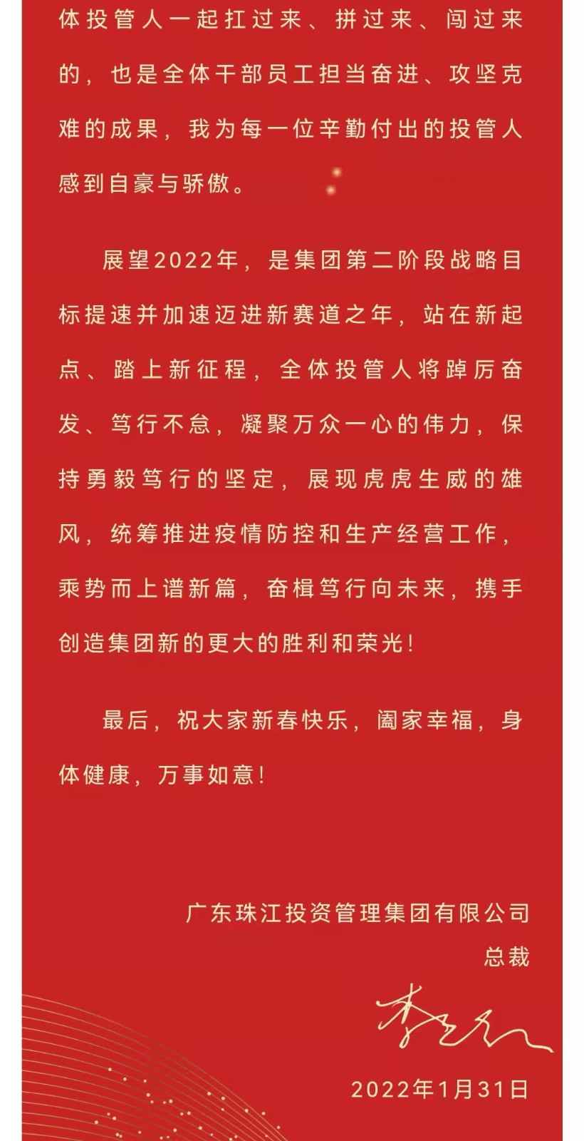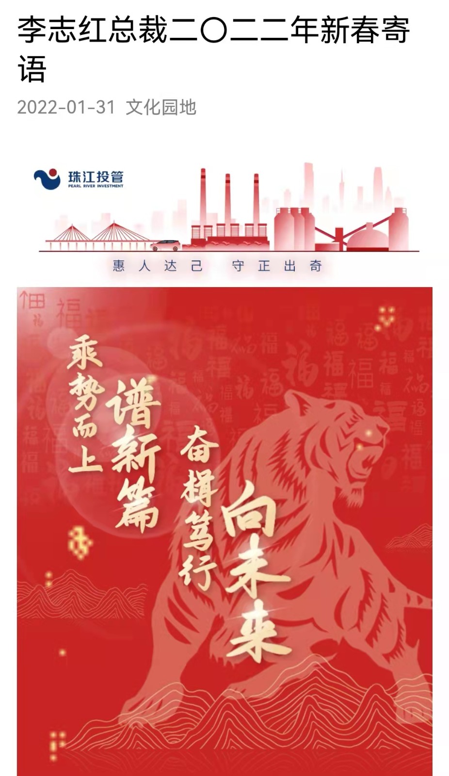 李志紅總裁二O二二年新春寄語